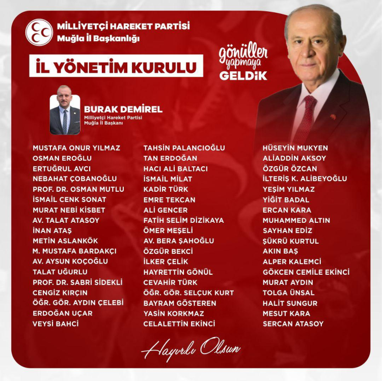 MHP Muğla İl Başkanlığı Yeni Yönetim ve Divan Kurulu’nu Açıkladı
